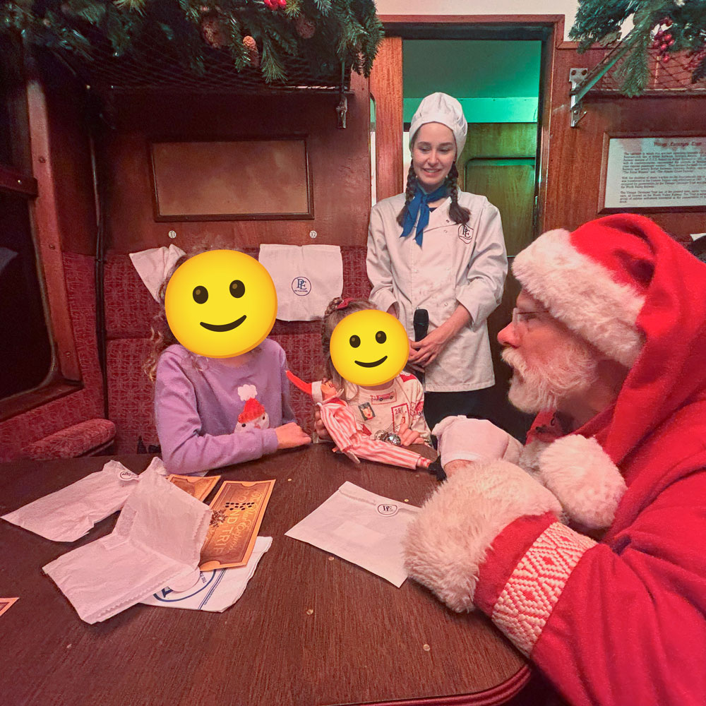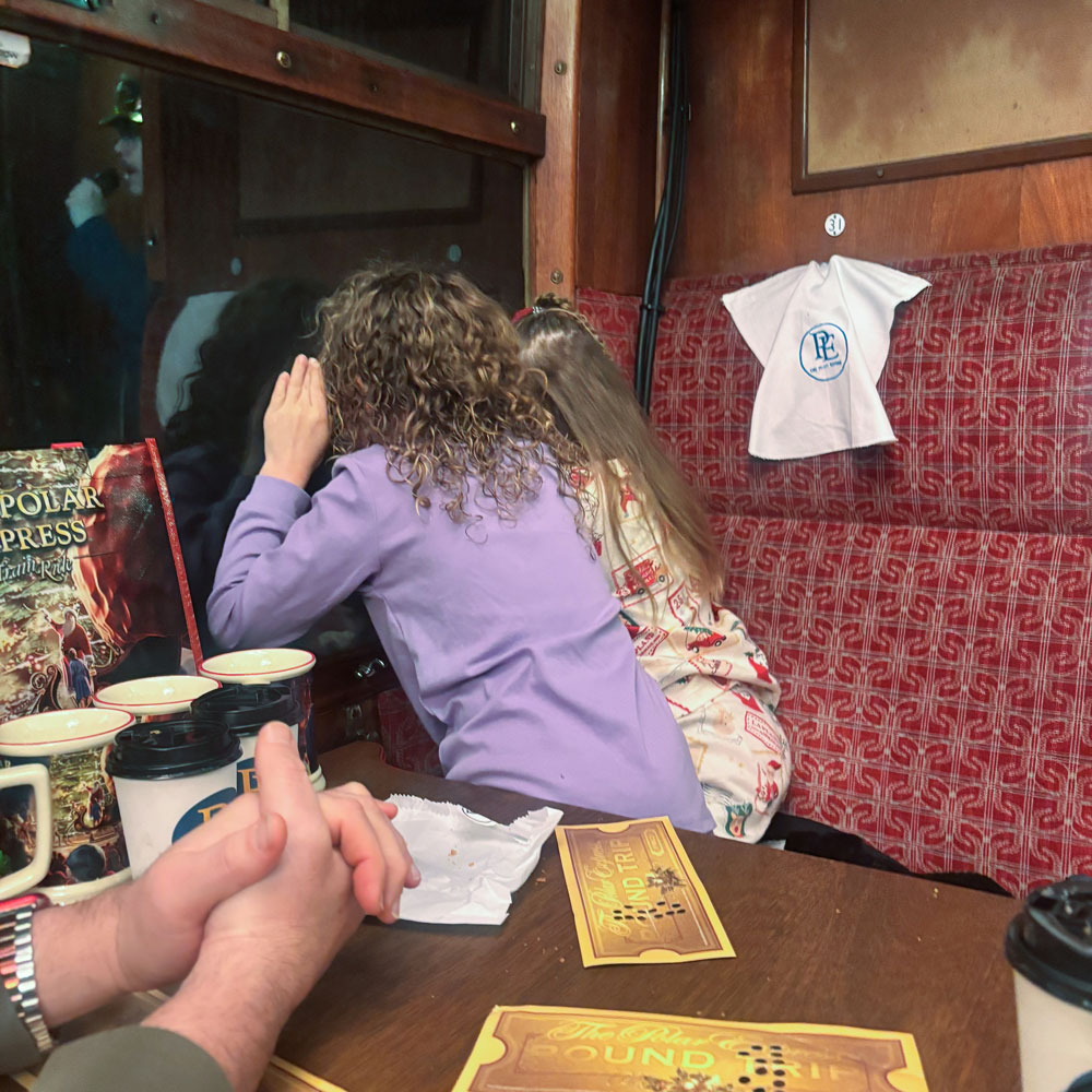 With golden tickets held high and smiles shining bright, the siblings boarded the beautifully lit train filled with excitement and anticipation. As Christmas lights twinkled around them, warm hot chocolate was served and the much-loved story of The Polar Express came to life, surrounding the children with music, storytelling, and festive cheer. Their eyes sparkled as they watched the magic unfold, fully immersed in the experience.