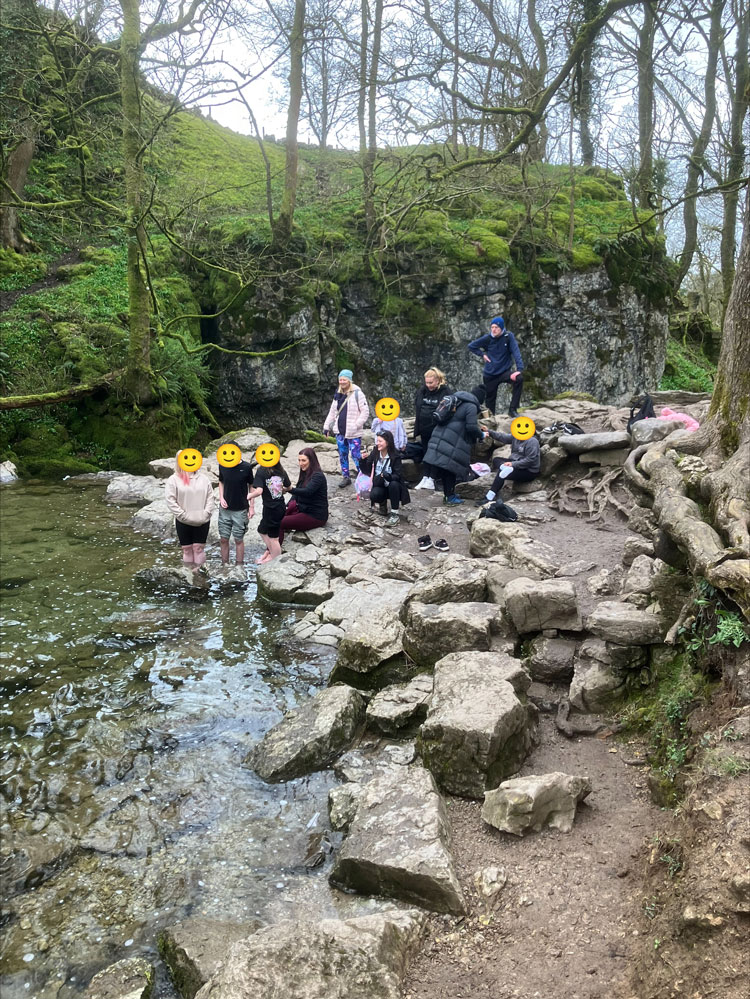 One of the highlights of the day was the visit to Janet’s Foss waterfall. Despite the chilly conditions, a few of the young people enthusiastically took the opportunity to go paddling, showing great bravery and a willingness to step outside their comfort zones. Laughter and encouragement from the group made this a particularly special moment.