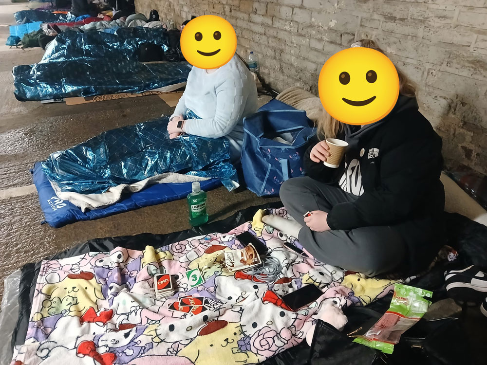 As the temperature dropped, sleeping bags were rolled out, pillows positioned, and the young people worked together to create their own makeshift sleeping spaces. Throughout the night, they encouraged and looked out for each other, embodying resilience and empathy—core values at the heart of restorative practice.